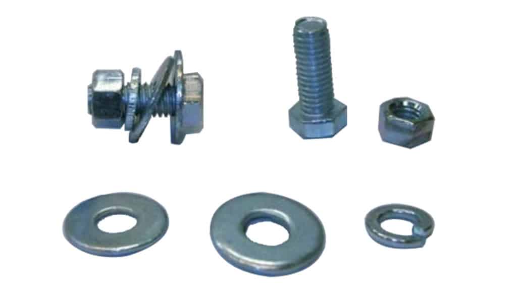 Tornillo para paso de gato galvanizado de 3/8” x 1”, diseñado para la sujeción de los pasos de gatos y resistencia a vibraciones continuas.